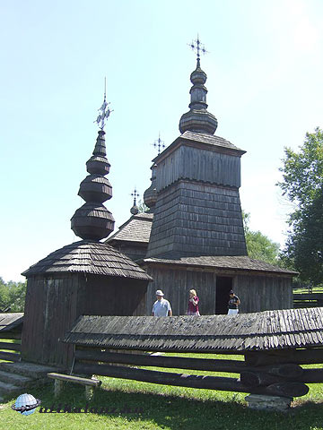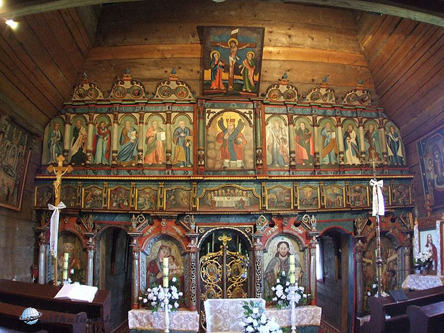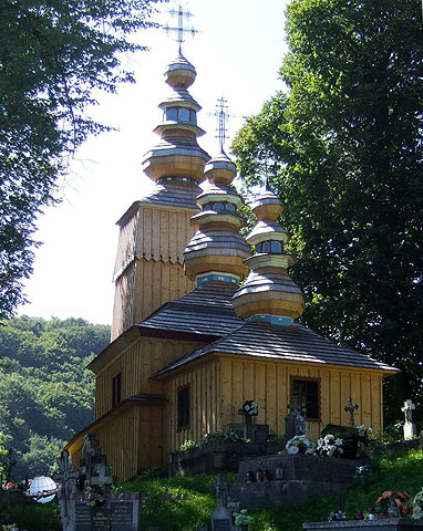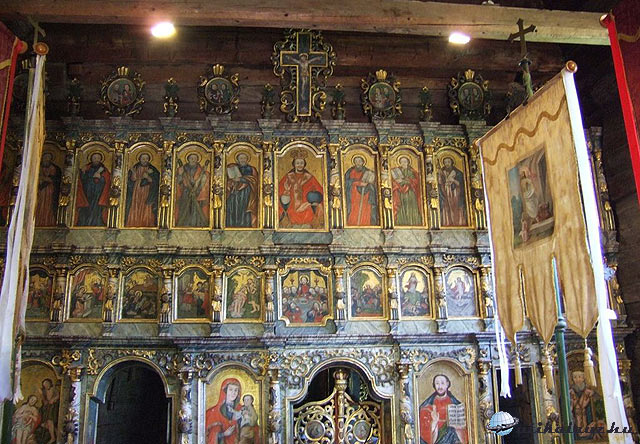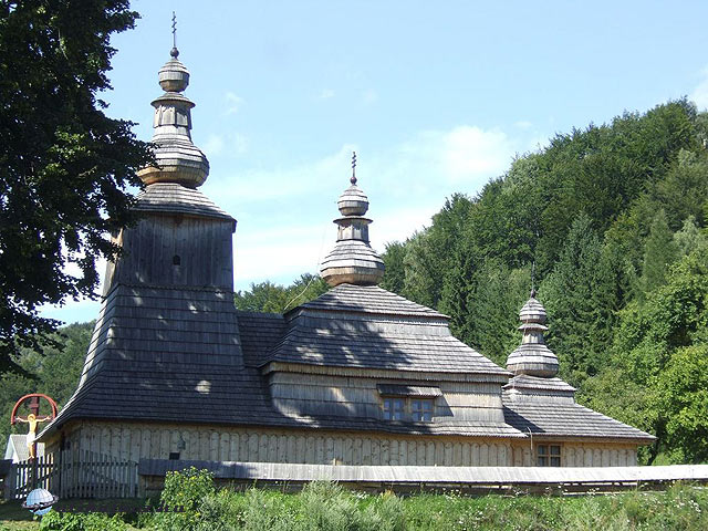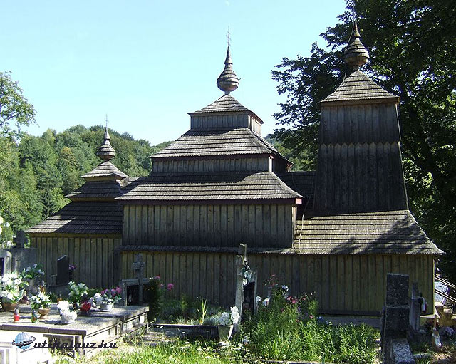 Innentől ÉK-i irányban a Duklai-hágóra vezető főút környékén lévő falvakban megbújó fatemplomokat kerestük, összesen 8 helyen jártunk. Ezek a XVIII. századtól a XX. század első feléig épültek, nagyjából egy építészeti stílusúak, összességében az UNESCO világörökségének részei. Ruszin görög katolikus vallásúak, ikonosztázaik szépek, szigorú rendszerben sorakoznak bennük a képek. Több helyen bejutottunk, általában 1-2 eurós belépővel, de ezek kiszámíthatatlanok voltak, az egyik helyre épp akkor értünk oda, amikor előttünk érkezett turisták a „kulcsszemélyt” megtalálták. Tulajdonképpen néhányat elegendő látni egy, a téma iránt nem mélyen elkötelezett érdeklődőnek, de azt nem lehet igazán megmondani, hogy melyikek legyenek azok. Mi Mérfalván és Rózsadombon jutottunk be, azok nagy élményt nyújtottak. A többi helyen (Szemes, Ladomérvágása, Felső Hunkóc, Meredély, Alsó Komárnok, Felső Komárnok) nem. Ezek kívülről élményt jelentenek, de nagyságrendileg nem növelték meg az élményt sem intenzitásban, sem mélységében, a gyerekeknek ilyenkor hamarabb elfogy a türelmük.