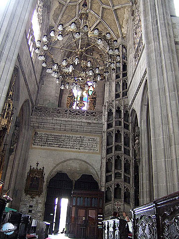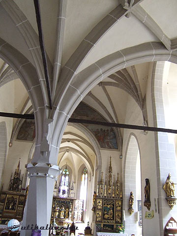 A templomban az előtérbe be lehet jutni, onnan szét lehet tekinteni, de az igen értékes gótikus oltárokat, szószéket nem lehet közelebbről megnézni, sőt az oszlopok is jelentősen akadályozzák még a fényképezést is – sajnos az elővigyázatosságot teljesen meg tudom érteni, de akkor is kár érte. A kapubélletek és falba épített sírkövek hálás fotózási témát adnak itt is.