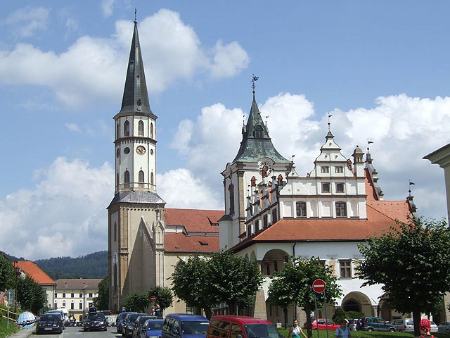 A főutcán sétálni eleve kellemes, szemet gyönyörködtető régi házak, kis közök, felbukkanó apró részletek mindenfelé – a sok kiülős étterem, söröző a ráérősebb turistáknak kulináris élvezeteket is nyújt. A Szent Kereszt plébániatemplom gótikus épülete 1444-től épült, ma is egységes képet nyújt – a barokk orgonaszekrényt kivéve -, ritkán látni ilyet. A különálló harangtornya reneszánsz stílusú, sgraffitós, 1591-ben épült, díszítése magyar címerfélét is tartalmaz.