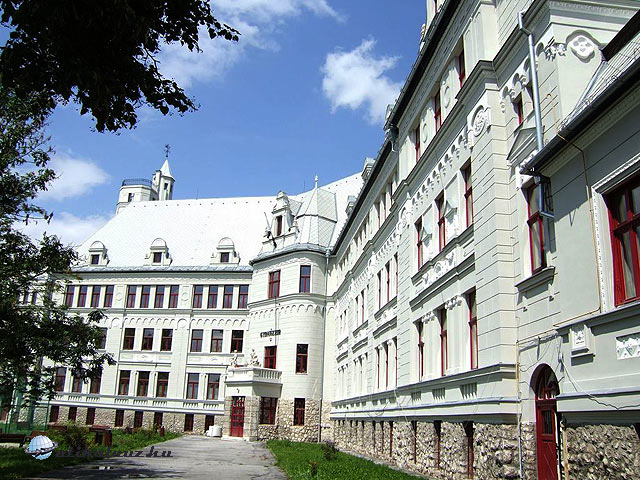 A valahai nyomda épületén is észrevettük az emléktáblát, aztán a Szűz Mária-templomhoz mentünk. Ez is egy gótikus istenháza, 60 m hosszú, mellette szintén gótikus részleteket megőrzött volt kolostorépülettel. Sajnos most sem volt esélyünk bejutni, mint hét éve sem, de ezzel együtt érdemes ide is elsétálni. Mellette a Monarchia klasszikus gimnáziumépülete áll, most szépen felújítva. Méltóságteljes nagy épület, kifejezetten oktatásra tervezve, nagy udvarral, ahol ma még a sportpálya is elfér(!). A kolostor mögötti falrésznél sétáltunk visszafelé a főtérre, majd a Thurzó-ház és a mai Városháza felé hagytuk el a város központját, a városfal mentén sétáltunk vissza az autóhoz.