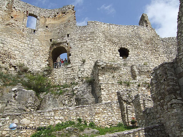 Nekünk a küzdelmes megközelítéshez „járó” parkolót sikerült megtalálnunk a faluban (2 euro), innen száraz, napos időben nem volt kis feladat a vár meghódítása – erőltetett menetben is legalább fél óra volt, nekünk városiaknak. Tulajdonképpen egyenesen vezet föl gyalogos földút a külső vár déli csücskéhez, majd pedig hátulról megkerülve vezet el az északi végén lévő egyetlen bejárathoz. A bejárat előtt pár száz méterrel van a kényelmesebb parkoló, ahová a faluból ÉK-re kiinduló, majd K-re tartó útról a Zsigra felé D-re átvezető kis útról kell jobbra fordulni. Tulajdonképpen a várat épp a túlsó oldalról lehet autóval „megtámadni”, megéri az a kis (kb. 4 km) kör, onnan már közel van a bejárat – nem tudom a parkolás tarifáját, de valószínűleg megéri. A belépő: 5/3 euro (felnőtt/gyerek) – magyar nyelvű részletes ismertetőt (vezető) is adnak a jegyhez. Ez a vár valóban a nagy magyar várak egyike volt, a megmaradt romok is igen tekintélyesek – természetesen a külső vár udvarai a terület nagy részét teszik ki, de a belső vár épületeiből soknak az alsó része, romosan bár, de megmaradt. A nagyon kevés fedett, vagy azzá tett részben van a kápolna és néhány helyiség, ebben van némi kiállítás – ezek inkább csak perceket vesznek igénybe. De a falak nagy élményt jelentenek és a kilátás a környékre csodálatos – a sok ablakhelyről jó fotókat lehet készíteni pl. a Szepeskáptalanról is, jó teleobjektívvel vagy nagy zoommal. A legjobb kilátás természetesen az kerek öregtorony tetejéről van.
