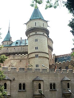 Július 8-án a legtávolabbi célpontot cserkésztük be, Bajmócot, útközben Privigyén megnéztük a kívül gótikus, belül barokk templomot – ezt már nem szerettem. Privigyéhez csatolt városrész ma már Bajmóc, ez a neoromán és neogót stílusban átépített régi vár. Szépen fel van újítva, a vezetés is elég jó lehetett (ahogy az előadásból és a többiek reagálásából gondoltuk) – itt még magyar füzet sem volt. A faborításon magyarul bölcsességek voltak – igaz némelyiket virággal eltakarták.