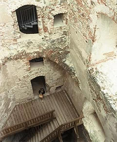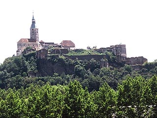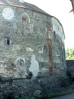 Következett Városszalónak vára – benne egy béke múzeummal. Az épület maga nagyon remek, de a kiállítás németül sem igazán érdekelt. Egyébként egy volt osztrák külügyminiszternek tetszett meg a vár és ő alapította ezt a múzeumot – így legalább ez a remek végvár jó állapotban van. Ekkor még alig múlt el dél, így további helyeket is célba lehetett venni. Tovább délnek vettük az útirányt, Németújvárt gondoltuk “megvívni”. Ahogy mentünk arrafelé, egyszercsak egy hegy tetején elénk tárult a kép – mint Pannonhalma, vagy a Mont Saint Michel – messziről, jellegzetesen és fenségesen. Ez egy óriási, sok védelmi szinttel kiépített vár, aminek megmaradt részei is monumentálisak. Elvileg a várudvarra is fel lehet menni autóval, de iszonyú meredek, még gyalog is igencsak nehéz volt felmenni. Vagy öt védett várkapun keresztül jutottunk fel a várudvarba, ahonnan még a belső vár következett. Ez a kiállítás is jó volt, s a csúcs a torony megmászása. A végén én már féltem, pedig biztonságos volt. A kilátás fantasztikus, az egész környék a lábunk előtt hevert.