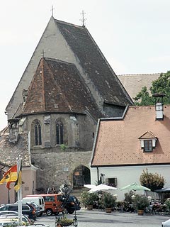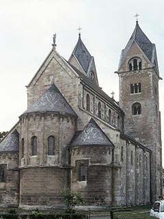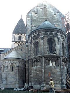 Óriási élmény volt minden tekintetben. Épp mise előtt értünk oda, az érkező magyar gyülekezet egyszólamban katolikus népénekeket énekelt – méltóságteljes és fenséges volt. Ezalatt egészen fiatalok is gyóntak – jó papjuk lehet. Mi csendben nézelődtünk, aztán a feleségemnek szóltak, hogy a szentély elejénél jobbra van az 1003-ban(!) már állt kápolna. E mellé építették fel a XIII. század első felében a kéttornyú templomot, amit 100 évvel ezelőtt neogót stílusban meghosszabbítottak – így került a két torony a templom közepébe. Érdekessége még a templomnak, hogy a tetőterében kolostorcellák voltak, ahol kódexeket írtak – itt használták a későbbi Pray kódexet is – ebben van az Ómagyar Mária siralom. A templomot anyaországi támogatással renoválták, amely nagyon szép, a mai műemléki eljárásokat alkalmazó volt. A különböző korokban épült részek jól elkülöníthetők – így még könnyebb a szépségen túl az építészeti korszakok megértése is