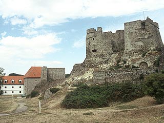 Hazafelé még egy felvidéki túra zárta a kultúrrohanást. Először Bény román stílusú templomát láttuk kívülről – az esperes úr több helyen misézik, ide másfél óra múltán jött volna, amit nem vártunk meg. Következtek Léva várának romjai – szépek a romok, vannak belső épületek is, de azokban számunkra érdektelen kiállítások voltak. A vár nagyobb részét egyébként lebontották, kár érte.