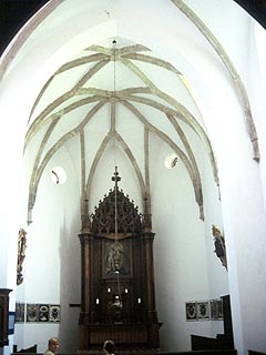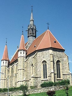 Következett Máriafalva gyönyörű gótikus temploma. A szentély boltozatának záróköve a Kossuth-címer(!).