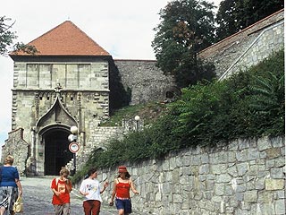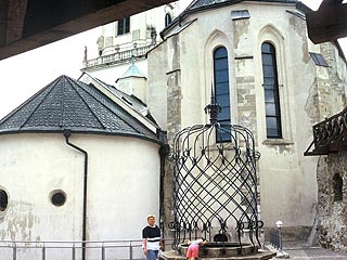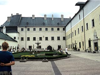 Utána Körmöcbánya következett. A templomot nem láttuk belülről, mert elég sajátosan volt megszervezve a belépés, mire rájöttünk, már nem másztuk meg újra a hegyet. A vár egyébként szép, amin belül van a gótikus nagytemplom és a román kori kápolna – kár hogy nem láttuk őket. Az óváros hangulata kellemes. Ezt követően már csak Nyitrán álltunk meg – a püspöki várba mentünk fel, bár itt sem volt nyitva a templom. Szép barokk paloták sorjáztak, bár egy részük még igencsak felújításra vár. A várban természetesen Szvatoplukot és az Ómorva-Birodalmat emlegették a feliratokban, nem zavarta őket, hogy a XI-XIII. században a Magyar Királysághoz tartozott ez a terület, amelynek emlékei a vár épületei.