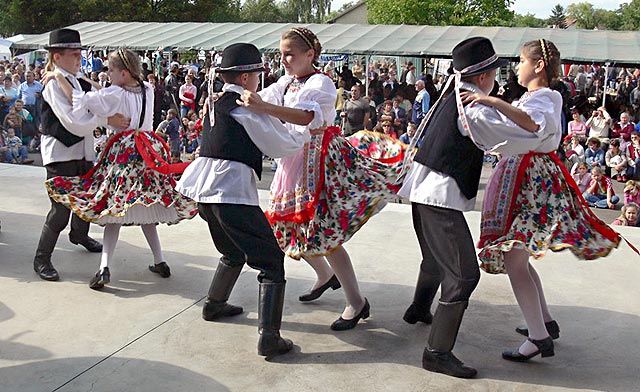 Fáradunk. Egyre könnyebb ellenállni a kísértésnek, pedig az nem kicsi! Pihentetőül nézünk egy kis kultúrát. Bemelegítésül a gyerekeket mozgatja meg két csinos aktivista. Lelkesen énekelnek, táncolnak. Irigylem őket, hogy még tudnak mozogni. Nekünk a szemlélődés már jobban esik. Aztán Alsósztregova, Parád, Csömör, Tótkomlós, és a helyi Rozmaring hagyományőrző együttes, táncosok, zenészek kezdik el műsorukat. Láthatóan jól érzik magukat. Ők is, meg a közönség is. Utána helyet cserélnek, és most már az előbbi szereplők tapsolnak.