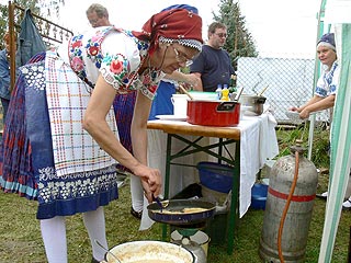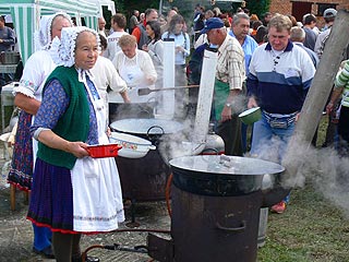 Közel félszáz üstben, fazékban, tepsiben készül a finomság. Azonnal elveszítem önbizalmamat, hiszen ezt lehetetlen lesz végigkóstolni. Persze azért harc nélkül nem adom fel. Régi országjáró tapasztalatomat bevetve nem hagyom, hogy az első szembejövő haluska rám erőszakolja magát, hiszen az út menti csárdákba is oda érdemes betérni, ahol sok autó – lehetőleg kamion – áll. Annyi ember csak nem tévedhet!