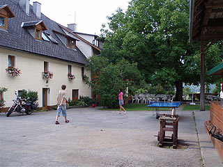 Jelentem, itten a vacsora után nem szokás felállni az asztal mellől, sakkoznak, kártyáznak, sör vagy tea mellett órákig beszélgetnek a családok, addig a gyerekek kinn játszanak. Mi is próbáltunk így tenni, de a gyerekeink 5-6 évvel idősebbek voltak a 12 éves korú átlagnál, a sztorizgatást pedig erősen hátráltatta, hogy még a belga vendégeknél is gyengébben beszéltük a németet. Az aktivitinél viszont derekasan helytálltunk, becsináltak a röhögéstől, mikor a “szemtengelyferdülést” akartam negyedórás szótárazás után elmutogatni. A hotel mellett egy pajtából átalakított színházteremben minden pénteken színielőadást tartanak, előadás után a nézőtér automatikusan sörházzá alakul át, ahol beszélgetéssel, szolid énekléssel lehet a korsó söröket kellemesen lekísérni.