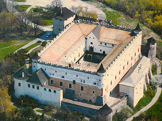 Ebben a kellemes kisvárosban elsősorban azért pihentünk meg, mert az ételekkel teli hatalmas szatyor nem fért már el a lábaimnál, így apasztani kellett a tartalmát. Tízóraink helyszínéül a központban található és a város képét egyértelműen uraló várat választottuk. Az építményt a XIII. században emelték, itt született Balassi Bálint, akinek emlékét a bejáratnál egy tábla is őrzi. Mivel csak kényszerű pihenőt tartottunk, ezért a várat belülről nem néztük meg. (Parkolni a vár bejáratánál lévő fizetős parkolóban lehet, 20,- Sk/óra.)