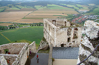 , de falai fennmaradtak. A vár aljában található egy fizetős parkoló, de ha még a sínek előtt az út mellé leparkolunk, akkor nem kell fizetni. A várbelépő több mint 100 korona. Kicsit megerőltető felkapaszkodni a domboldalon, de utána sok időt lehet eltölteni a régi kor letűnt emlékeit csodálva. Az eső persze esett… (jobbról: Kilátás az egyik bástyáról)
