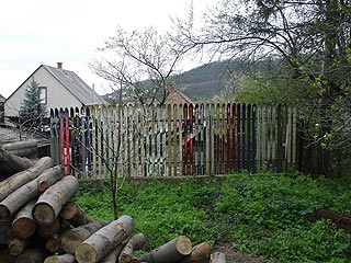 Átverekedtük magunkat a hangos barnaruhás orkok és az ezüstösre fújt hajú tündenépség között, és elindultunk lefelé. Szerencsére sok fa és bokor nőtt arrafelé, így volt mibe kapaszkodni, anélkül nehéz lett volna épségben leérkezni (merthogy mi természetesen toronyiránt mentünk). Utána tettünk még egy rövid sétát a falu körül, láttunk egy síkölcsönzőt, melynek a kerítése sílécekből áll, érdemes megnézni, nem mindennapi látvány.