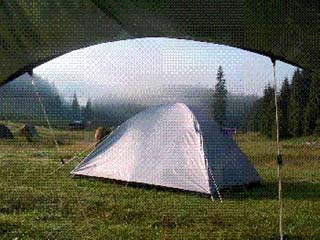 Sátor reggeli ködben |
