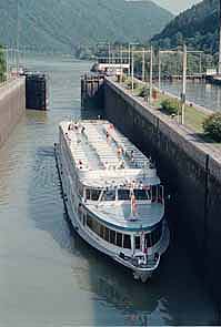 A  jochensteini erőműben senki. Az erőmű két oldalán több mint 10 méter a víz szintje közötti különbség. A hajókat nagy zsilipkamrákkal emelik, illetve süllyesztik a másik oldal szintjére. Ez egyúttal azt is jelenti, hogy a sátrakkal, kajával megrakott bicikliket fel kell cipelni három emelet magasságba egy lépcsőn. Könnyítésül egy lemezszegélyt erősítettek a képcső szélére, hogy gurítani lehessen a bicikliket. A igazán nehéz a leengedés.