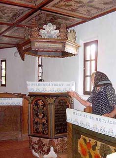 Megtudtuk tőle azt is, hogy a 2001-es árvíz közvetlenül nem érte el a templomot, a Tisza az ajtótól néhány méterre megállt. A talajvíz mégis nagy kárt okozott, mert a falakban felszívódva majdnem tönkretette a képeket. Valami só csapódott ki rajtuk. A restaurátorok tavaly fejezték be a tisztításukat. Elővigyázatosságból vakuval nem szabad fényképezni őket.