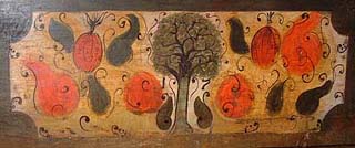 . A diadalív feletti felirat szerint bizonyos Persenyi Gábor meszeltette le a falképeket 1642-ben és virágmintákkal díszítette ki a templom belsejét.