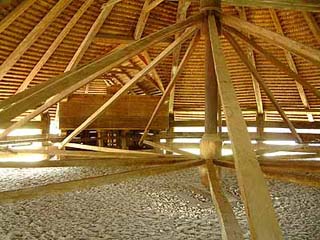 – A mezítlábas jelzőt valószínűleg a döngölt agyagból készült padlóval, a gerendavázas, agyagos sárral tapasztott vesszőfonatos falakkal érdemelte ki, mert ezek elkészítéséhez a sarat mezítláb szokták dagasztani – magyarázta Baráth Menyhértné, Erzsi néni, aki az egyházközség megbízásából a turisták állandó kalauza.