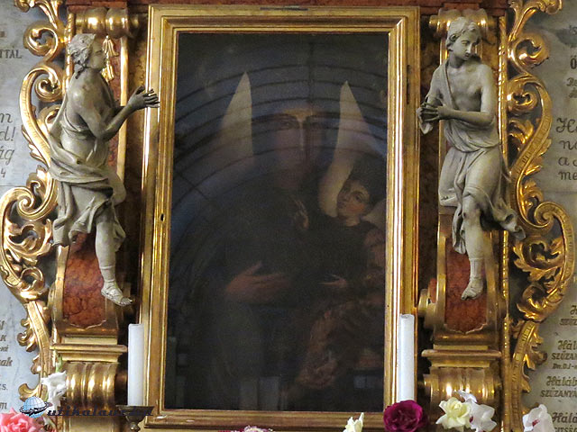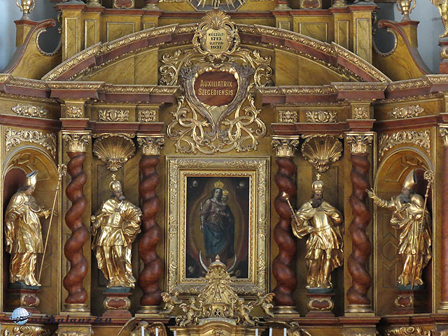 A bejárttól jobbra látható a szegedi Morvay András 1740-ből származó festménye, a világhírű czestochowai kegykép másolata. Itt Fekete Máriának, vagy Szerecsön Máriának nevezik a képet