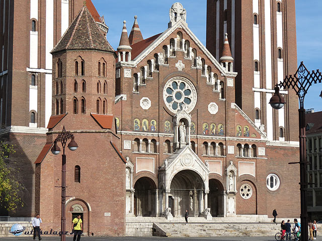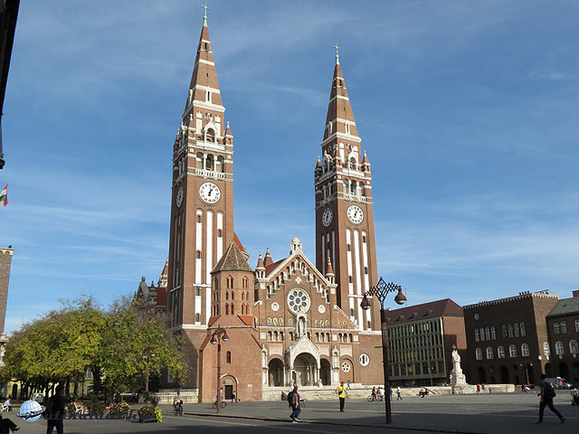 Természetesen kívülről is belülről is megnéztük a Dómot is – hivatalos nevén a Fogadalmi templomba, avagy a Magyarok Nagyasszonya székesegyházba -, amit az 1879-es árvízkor tett fogadalom alapján építettek – a munka befejezéséig ötven évig kellett várni.