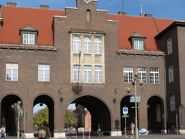 A tér másik oldalán egy újabb kapu következett, ami a Dóm térre vezet. A barna téglákból rakott épület akár Amszterdamban is lehetne a stílusa alapján, ahogy a Dóm teret U-alakban közrefogó árkádos épületegyüttes is Európa északnyugati településeit idézi. Látványos, de nekem kicsit hideg, különösen a tér üressége miatt. (Persze akkor sem volt szebb, amikor a szabadtéri játékok széksoraival láttam.)