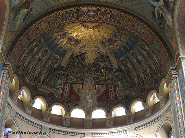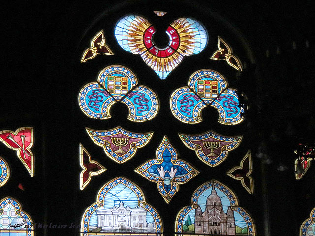 A kinti napsütésnek és a Róth Miksa műhelyében készített ólomüvegablakoknak köszönhetően nagyon szépek voltak a belső fények. Talán a lenti fotók is visszaadnak valamit a látványból, hangulatból. (Itt olvasható róla egy részletes leírás)