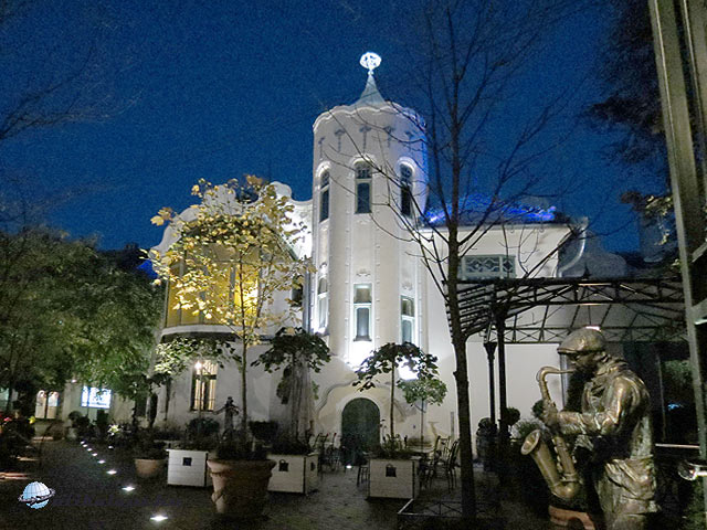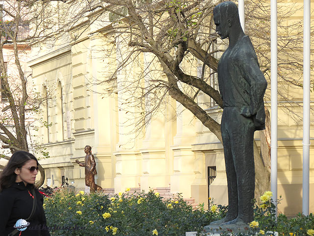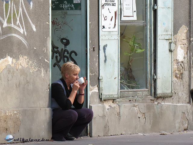 A városháza mellett megszólítottam egy magyarul beszélő társaságot, ők mondták, hogy a szökőkút után a jobbra menő utcában van. Az utca elején volt egy eligazító tábla a nevezetességekről, ezen nem szerepelt. Ettől kicsit elbizonytalanodtam, és megkérdeztem egy ott várakozó taxist. Mivel magyarul nem tudott, inkább mutatta, mint mondta, hogy a párhuzamos utcában kell felmennünk. Ha már egy utcával arrébb mentünk, megkóstoltuk az ott működő cukrászda fagyiját. Egy-egy hatalmas gombócot 40 dinárért mért a hölgy, és nagyon finom volt a mák és a vanília is. Az utóbbi azokra a régi ízekre emlékeztetett, amikor még valóban maguk készítették a cukrászok a fagyit.