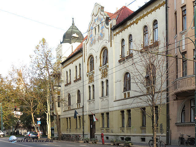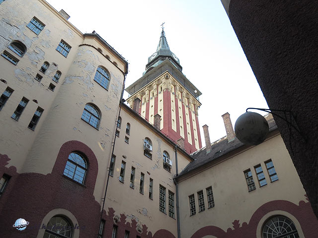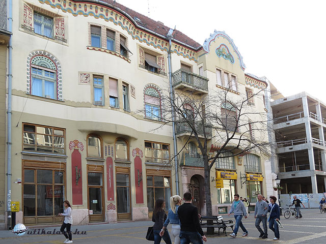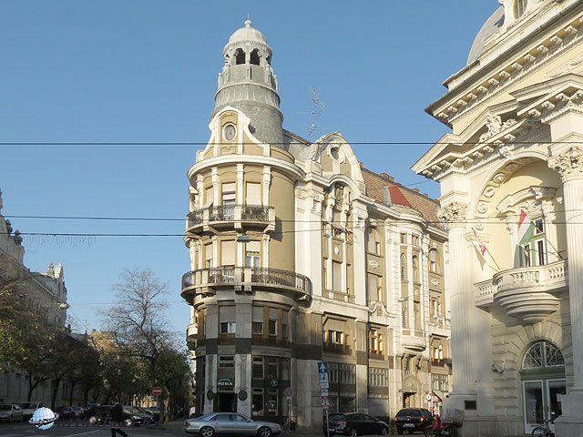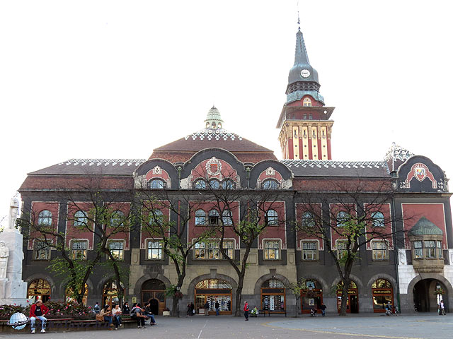 Már sétánk elején is láttunk több szép szecessziós épületet, de az igazi a Korzó nyugati végén lévő teret elfoglaló Városháza volt. Az 1912-ben elkészült épületet a magyar szecessziós építészet két jelentős alakja, Komor Marcell és Jakab Dezső tervezte. Az üvegablakokat Nagy Sándor festőművész alapján Róth Miksa “Császári és Királyi Udvari Üvegfestő és Mozaik Művész” készítette.