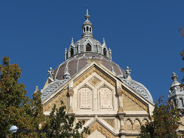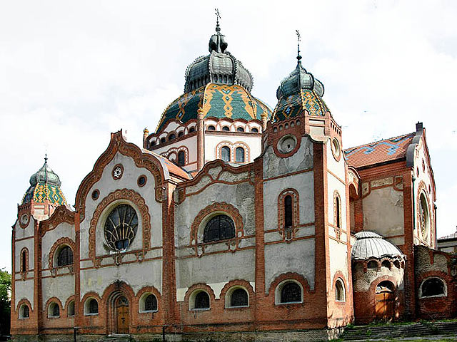 A második legnagyobb hazai izraelita templomot a múlt század első éveiben építették Baumhorn Lipót tervei szerint. A legmagasabb pontja közel 50 méteres. Bár a körülötte lévő fák kicsit elbújtatják, így is hatalmas. Igazán bent érzi az ember a méreteket, amikor felnéz a belülről 32 méter magas kupolára, vagy végignéz a két szinten 1340 ember befogadására képes padokon.