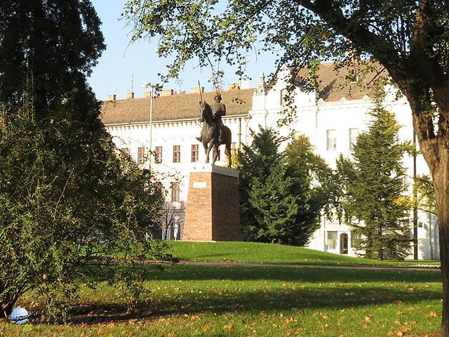 IV. Béla lovát lépteti a Széchenyi tér észak-nyugati sarkában