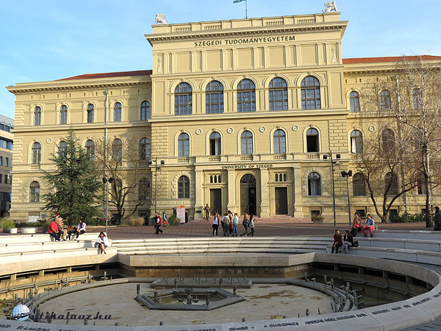 Sétánkat a Dugonics tér felé folytattuk, ahol sajnos már nem működött a szökőkút, de így is nagyon kellemes hely volt a meleg napsütésben.