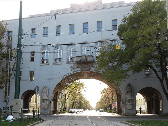 Az utca végén nyomban belebotlottunk egy szép szecessziós házba, a Ságvári Endre gimnázium épületébe, majd a Hősök kapuja mellett kiértünk az Aradi vértanúk terére.