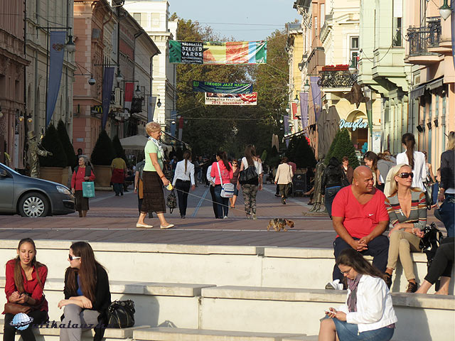 Újabb séta a központban, majd kávézás, süteményezés, a korzón sétálók bámulása a Belvárosi pékség és kávézó Kárász utcai teraszán. Ez is egy nagyon kellemes hely olcsó, de jó kávéval, hatalmas kenyér és péksütemény választékkal napi 24 órán át.