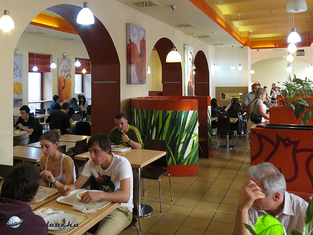 Ebéd előtti sétánk északi irányban a Belvárosi-hídig tartott. A Tisza megcsodálása után a Híd utcán indultunk a Széchenyi tér felé. Útközben véletlenül belebotlottunk a város talán legolcsóbb gyorséttermébe, a Tündérkonyhába, ahol a csontlevest 130 forintért, palacsintát 90-ért, a rántott sertésszeletet burgonyával 690-ért, a legdrágább ételt, a párizsi csirkemellet 870 forintért adták. Mindegyik normál adag volt, és az ízekkel sem volt probléma. Persze nem különleges gasztronómiai élményre vágytunk, csak éhesek voltunk. Másnap is itt ebédeltünk.