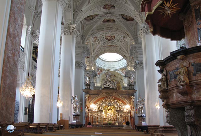 Még a tornyoknál is furcsább, hogy a templom közepén van egy önálló kegytemplom van, a Mária-ereklye “cellája”. Ha valaki belép a főbejáraton, könnyen esik abba a tévedésbe, hogy az ott szemben a főoltár, pedig az jóval mögötte található.