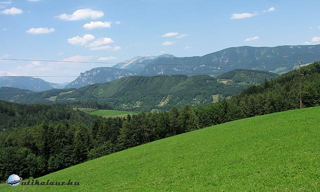 Ha hétvége lett volna, mehettünk volna a Máriacell és a tó között közlekedő gőzvillamossal is. Meg persze, ha nem sajnáltuk volna a 10 eurót egy útra. Most nekünk mindenképpen maradt a bicikli. A településről kivezető szakasz kivételével bicikliseknek, sétálóknak készült úton haladtunk. Az út legmagasabb pontja súrolta a 900 métert. Persze, nem kell megijedni, hisz a legalacsonyabb is 830 méter körül volt, így még az itthoni – Balaton-felvidéki – terepnél is kényelmesebben tekerhettünk.