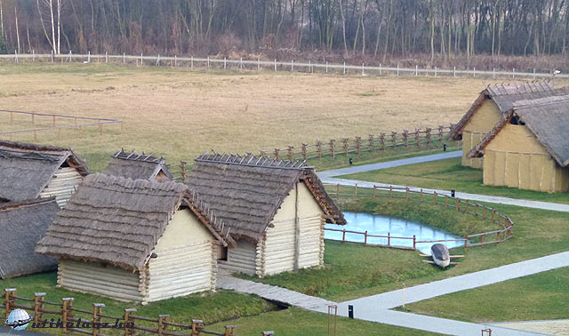 A fogadó épület melletti sík területen, egy kisebb tó mellett fel is épített az egykori lakók gerendavázú, sárral tapasztott házait. A két külön kort bemutató falucskák mellett magasodott a domb, ahol egykor a jól védhető települések voltak. Ezen újabb házakat és védelmi célokat szolgáló más építményeket rekonstruáltak az elképzelt formák szerint.