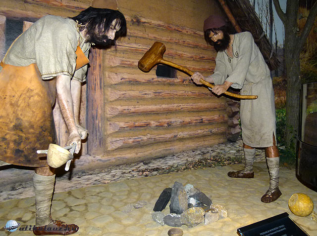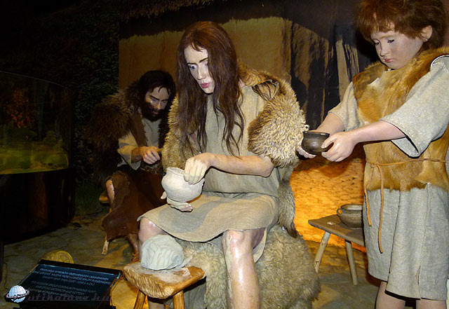 A kor divatja szerinti formában, és az uniós támogatásoknak megfelelő méretben megépített fogadó épület mozitermében kezdtük a látogatást, ahol egy látványos trükkfilmmel mutatták be, hogy több ezer évvel ezelőtt hogyan épült fel egymást követő rétekben újra és újra a település más-más lakókkal. Utána a történet egyes pillanatait egy hatalmas teremben közelről is megnézhettük. A kiállítás a kőkorszak végétől követi végig a területen megtelepedett emberek életét. Eredetit utánzó környezetben, méretben, valamilyen tevékenységet végző bábukból készített élőképekkel, diorámákkal.