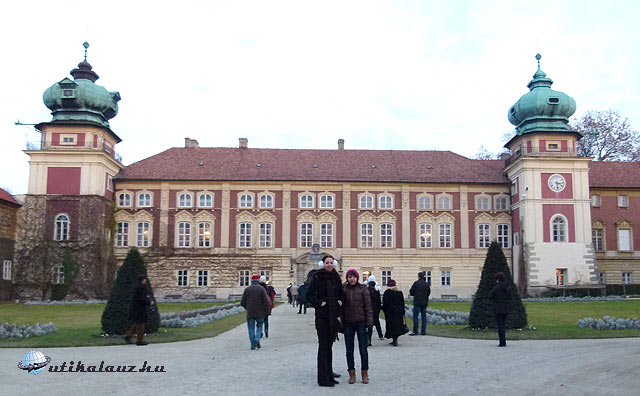 Az angolparkkal körbevett főúri rezidencia Lengyelország legszebb ilyen építményei közé tartozik. Építése a 17. század közepéig nyúlik vissza. Mivel fényképezni nem engedtek, így én megvártam a többieket a bejáratnál.