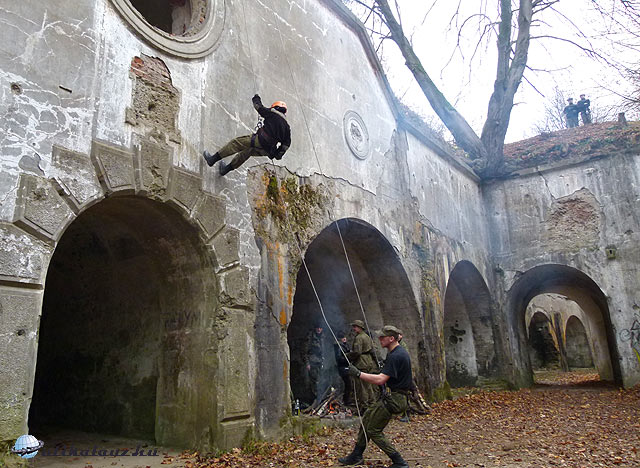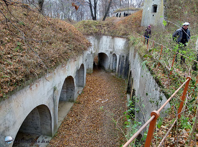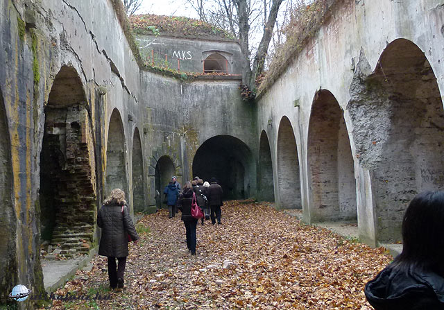 Érkezésünkkor az “udvaron”, illetve az erőd belső falán fiatalok mászógyakorlatokat végeztek és a betonkazamata egyik boltíves “helyiségében” éppen tábortűznél sütötték az ebédjüket. Egy komplett egység élte egykor itt mindennapjait. A katonáknak, lovaknak, ágyúknak, lőszereknek mind megvolt a helye. Valamikor a boltíves termeket a belső udvar felől téglafal zárta le, de ezeket később kibontották, és valószínűleg elhordták.