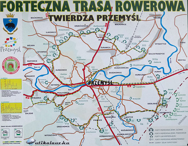 A Przemysltől délkeletre lévő I. számú erődöt “élőben” is megnéztük. A Salis-Soglio közvetlenül az ukrán határon fekszik. A fő része a lengyel oldalon, a segéderődök gyűrűje már az ukránoknál. Mi persze csak a lengyel oldalt néztük meg. A Salis-Soglio nevet arról a svájci mérnökről kapta, akinek a tervei alapján 1882-86 között megépítették. Eredetileg páncéltornyokkal tervezték, de pénzhiány miatt végül nyílt tüzérségi állásokat kapott.