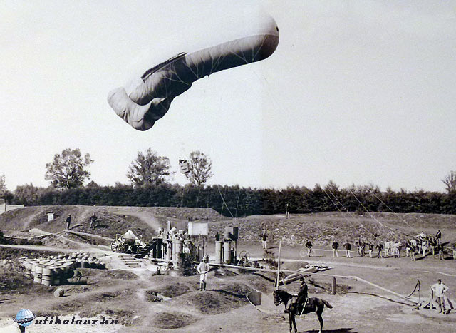Ilyen léghajóról készíthették – a fák koronájánál lóg a gondola két katonával