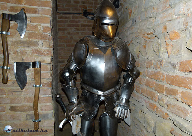 A megerősítésnél is igyekeztek megőrizni a múlt nyomait, például egy régi nagy tűz maradványait, vagy éppen a lent talált eszközöket. Különböző középkori címereket, harci eszközöket is elhelyeztek, például lovagi páncélt, kardokat, lőfegyvereket. Az egyik vitrinben néhány üveg flaska is van, az egyik tokaji felirattal.