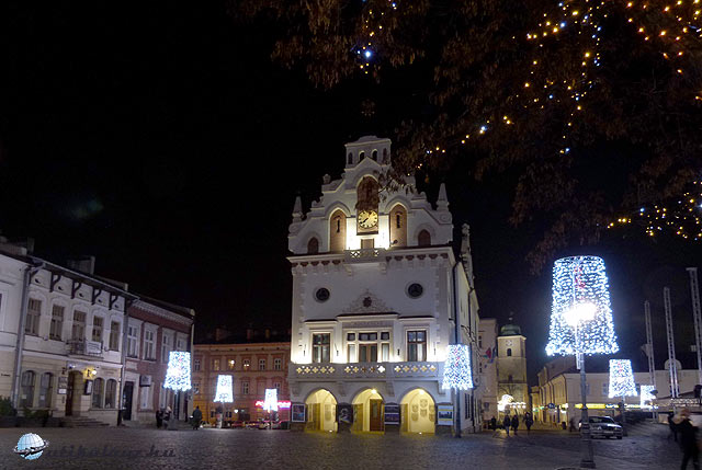 Rzeszów – a városháza karácsonyi kivilágítással