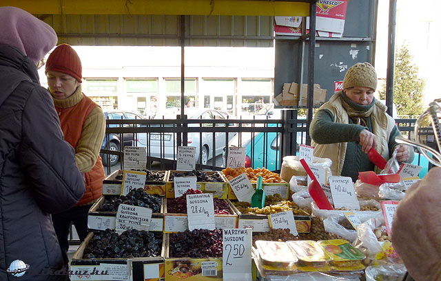 A piacon, illetve a vásárcsarnokban hatalmas tömeg volt. Mindent lehetett kapni, amit Dél-Lengyelországban keresne az ember. Szárított gombák, aszalt gyümölcsök, füstölt sajtok és szobacsizmák minden mennyiségben.