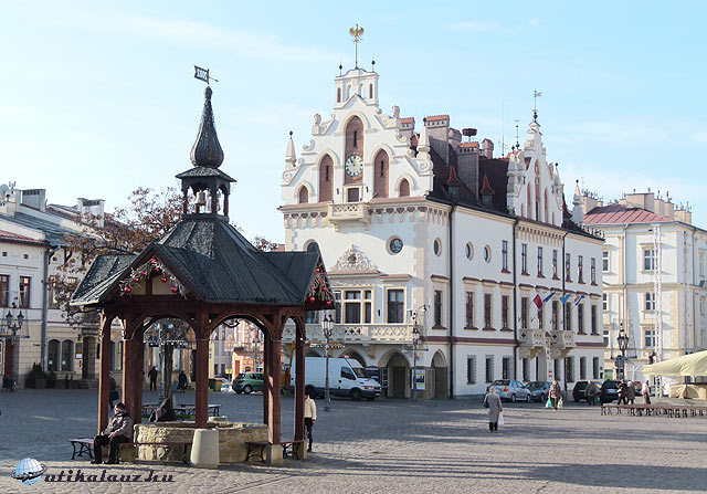 Rzeszów – a főtér a városházával és a régi kúttal