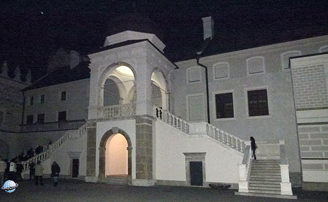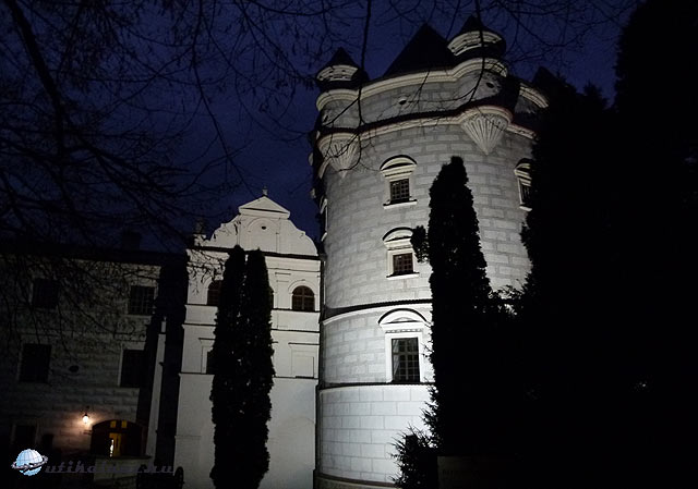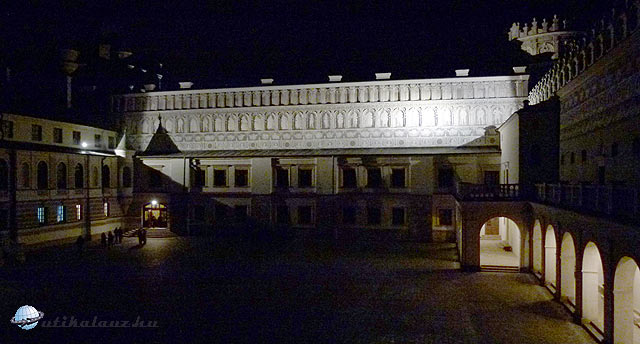 Útban hazafelé még bekukkantottunk a 16-17. század fordulóján épített krasiczyni kastélyba. A leírások szerint nemcsak Lengyelországban, európai szinten is a legszebb reneszánsz kastélyok közé tartozik. A tök sötétben többen megmosolyogtak a fotózás miatt, de mint kiderült, használt a hosszú expozíciós idő, több került a képekre, mint amit élőben láttunk.
