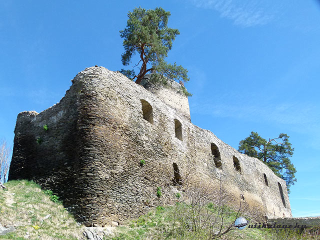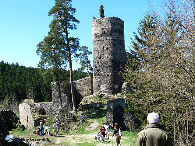 Következő állomásunk a közelmúltban rendbetett gutstejni lovagvár romja volt Konstantinovy Lázne közelében. Olyan igazán fényképre való romantikus hely egy erdő közepén, a Hadovka-patak kanyonja fölé magasodó sziklán.