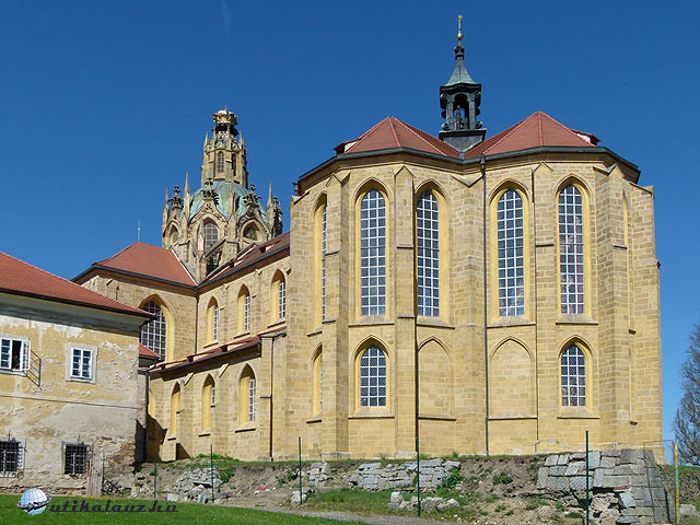 Az apátsághoz tartozó középkori bazilikát 1712-1726 között Jan Blazej Santini irányításával átépítették. A hatalmas új templom stílusában a gótikus és barokk elemek keverednek, a kor szokásaival ellentétben a sötét, félhomályos belső helyett világos, fénnyel átjárt templomot alakítottak ki.