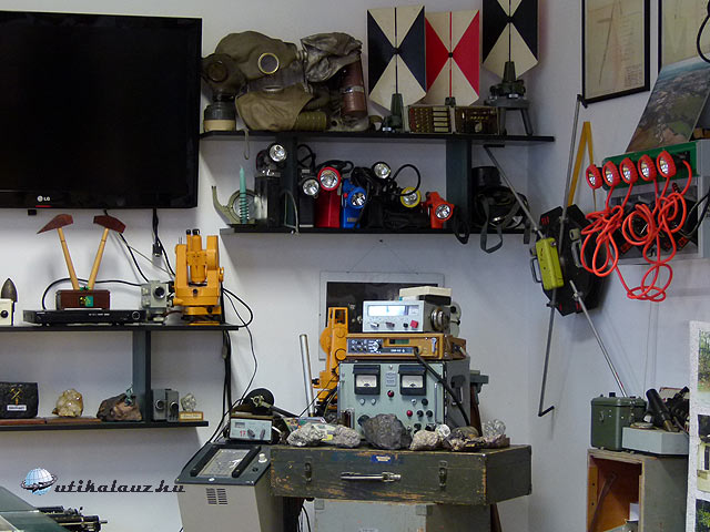 Ez a bemutató jóval rövidebb volt, de gazdagabb kiállítási anyagot tartalmazott a mi időnkhöz közelebbi korból. Különböző fúróberendezések a kézi eszközöktől a komplett fúrópajzsokig, védő- és mentőfelszerelések, világítóeszközök szerepeltek a kiállításon, még egy a radioaktivitást jelző Geiger-Müller számláló kattogó hangját is meghallgathattuk. Állítólag a gépek is működőképesek. Nagyobb csoportoknak bemutatót is tartanak a levegővel működő fejtőberendezésekkel.